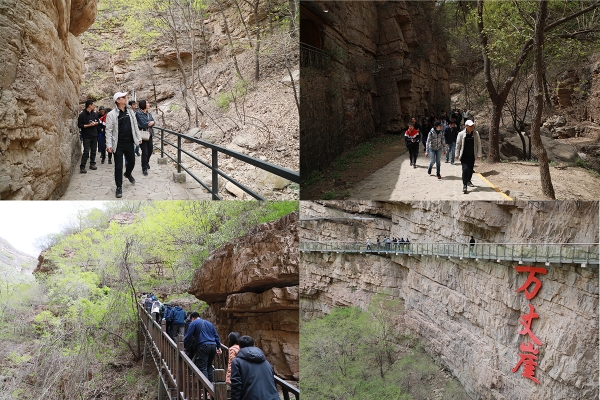參觀活動(dòng)結(jié)束后,大家開(kāi)始游覽京東大峽谷,沿著崎嶇的山路,欣賞大峽谷鬼斧神工的自然景觀。漫步于美麗的龍門(mén)湖,看群峰倒映水中;依崖而建的人工棧道,猶如攀巖在懸崖峭壁上,大家身臨其境,感受當(dāng)年軍民抗日的艱難險(xiǎn)境;天然形成的五龍?zhí)丢?dú)居特色,有的深不可測(cè),有的靜若處子,有的湍瀉奔流,為大峽谷增添了靈氣。大家在曲折陡峭的山路中穿行,互相鼓勵(lì),相互扶持,順利通過(guò)。一路游覽,一路暢談,一路體驗(yàn),大家感受到了自然風(fēng)光的美麗和今日生活的美好。